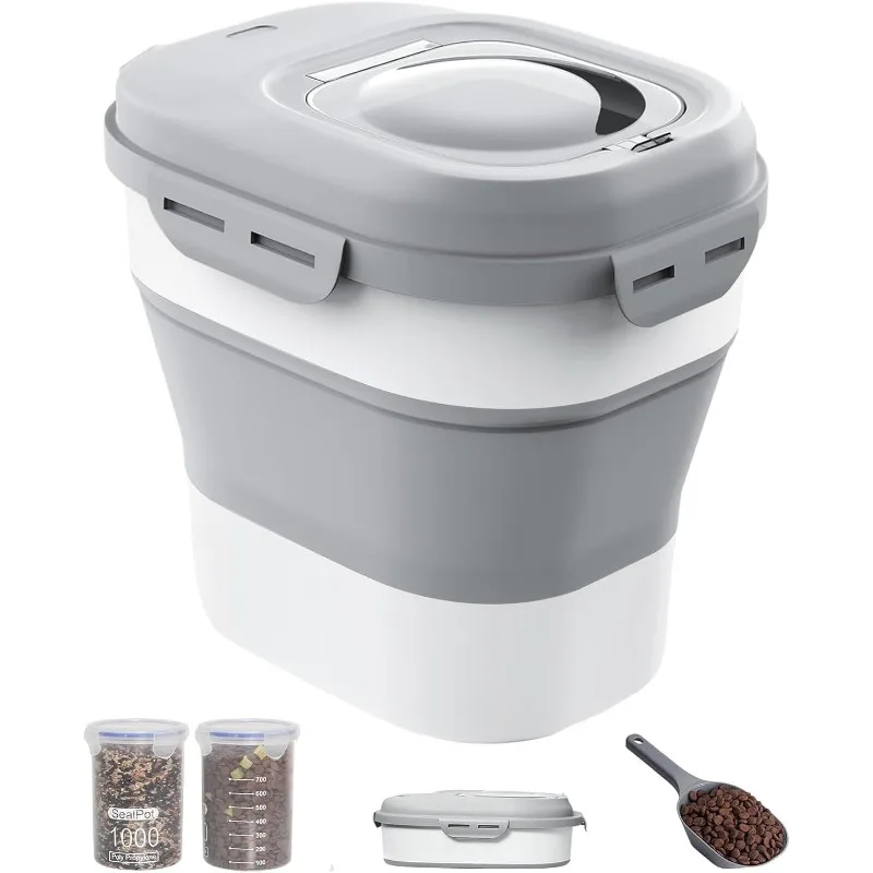 30-35 Lbs Dog Food Storage Container Collapsible Dog Food Container with Airtight Lids, Wheels, Scoop and 2pcs Food Storage Cont