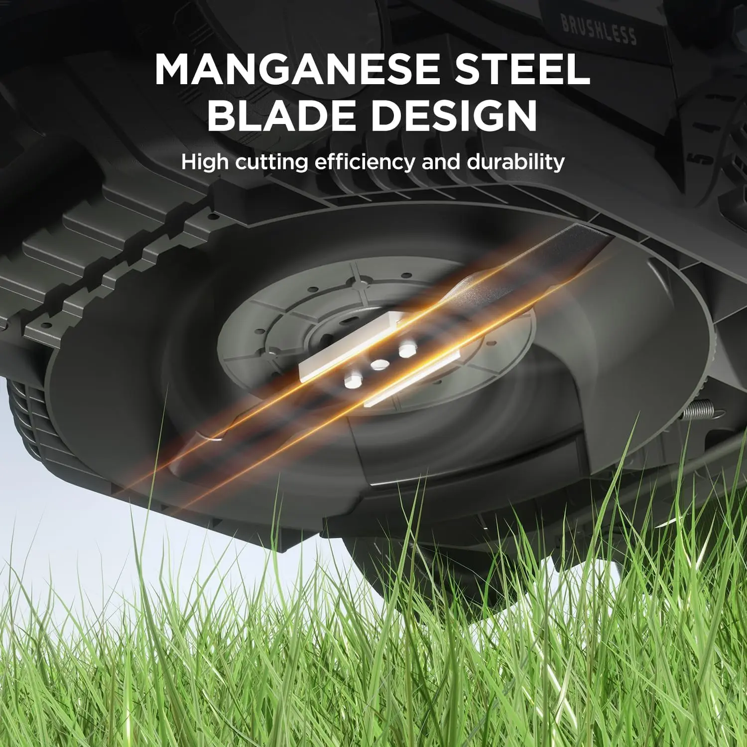 - [Brushless Motor]:The battery powered lawn mower is powered by a high-performance brushless motor, which is low-maintenance, low-noise, and powerful compared to traditional carbon brush motors, ensuring maximum performance and longer, smoother running time.