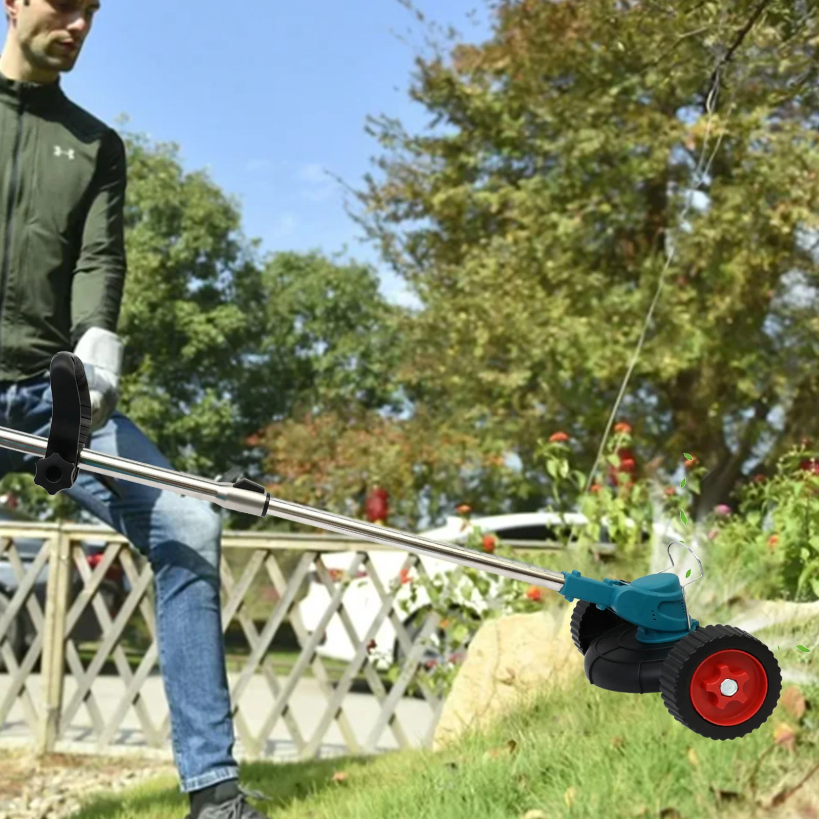 【Technical Upgrade, Flexible Handling】Innovative T-shaped auxiliary wheel design not only enhances trimmer stability but also shows extraordinary flexibility on complex terrain. Whether on flat lawns or slight slopes, it glides smoothly, making trimming work easier and more efficient.