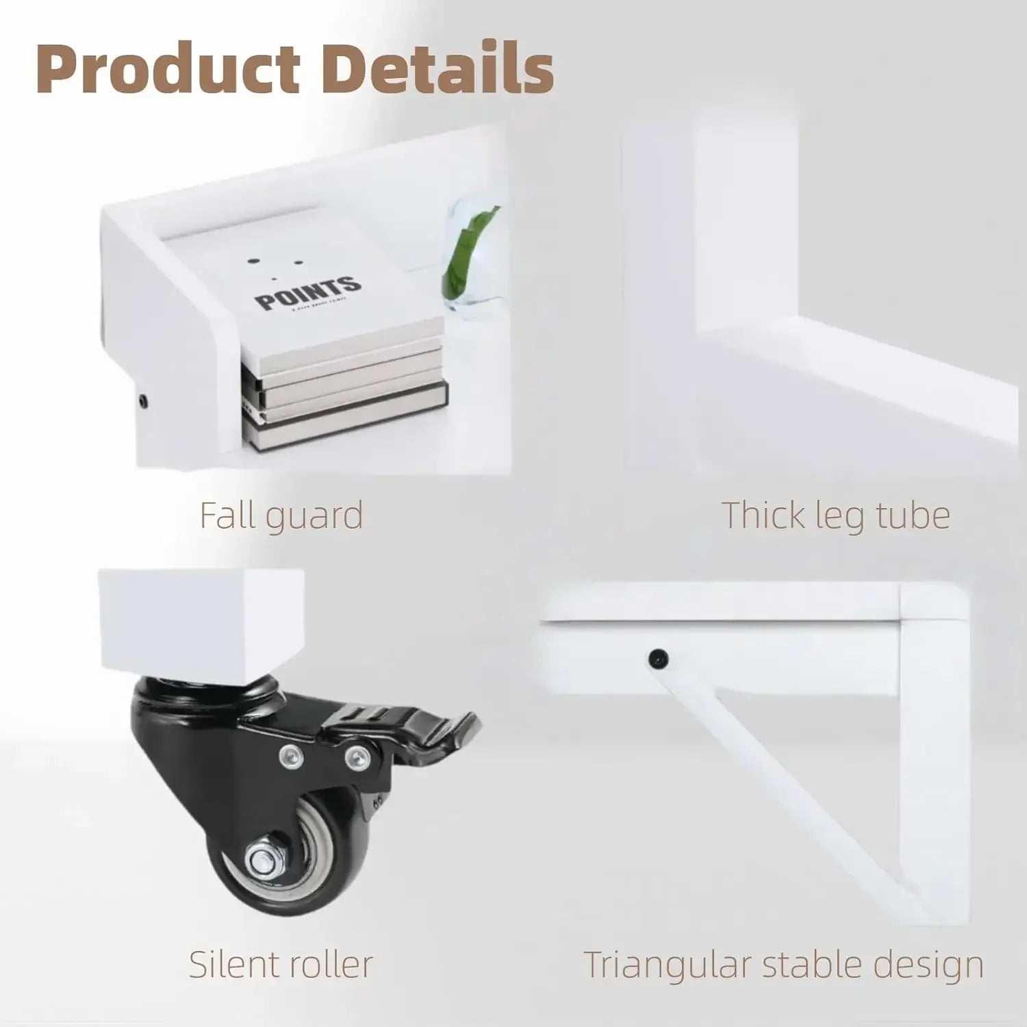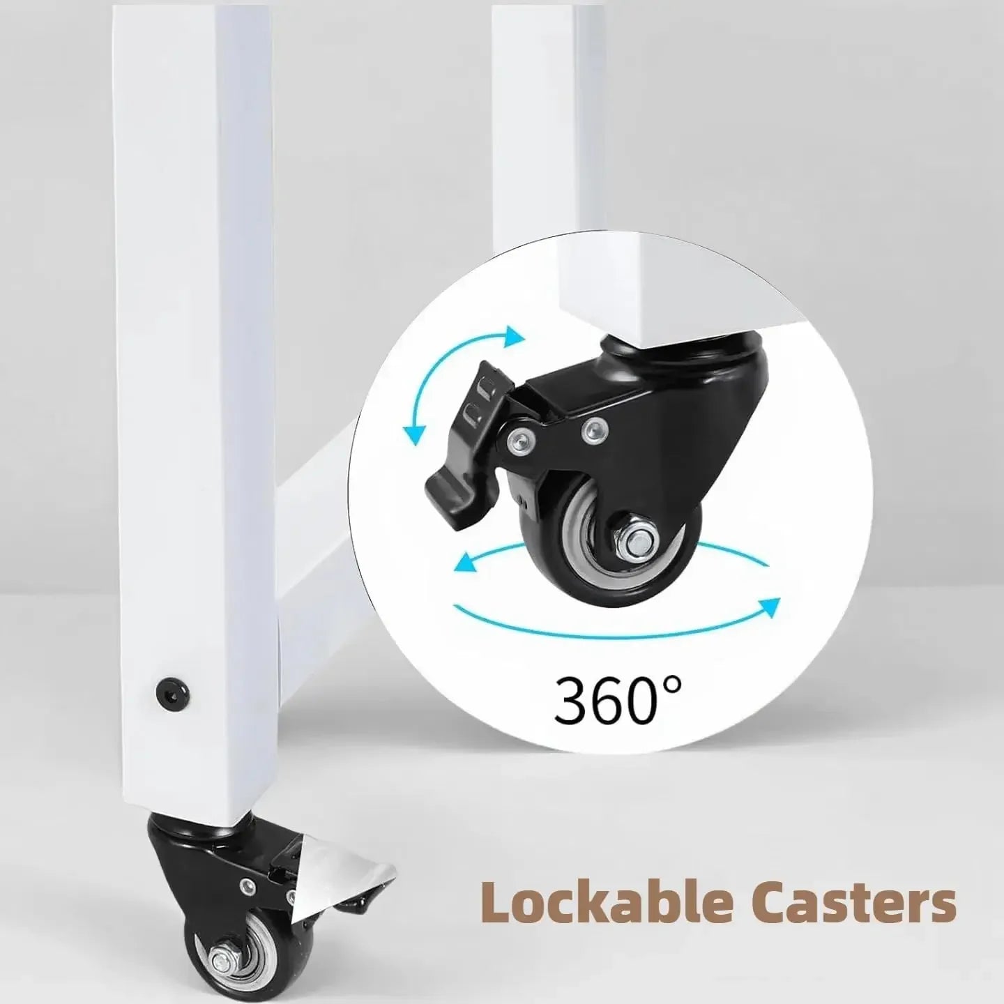 - 360° mobility with locks: Four metal rubber wheels glide smoothly and rotate to any position, with locking capability to keep the table securely in place for you.