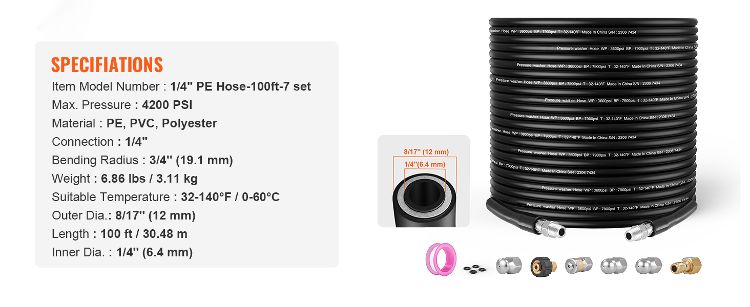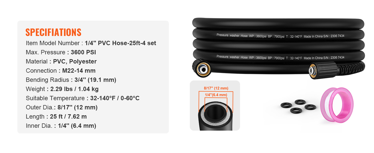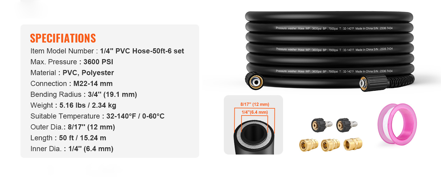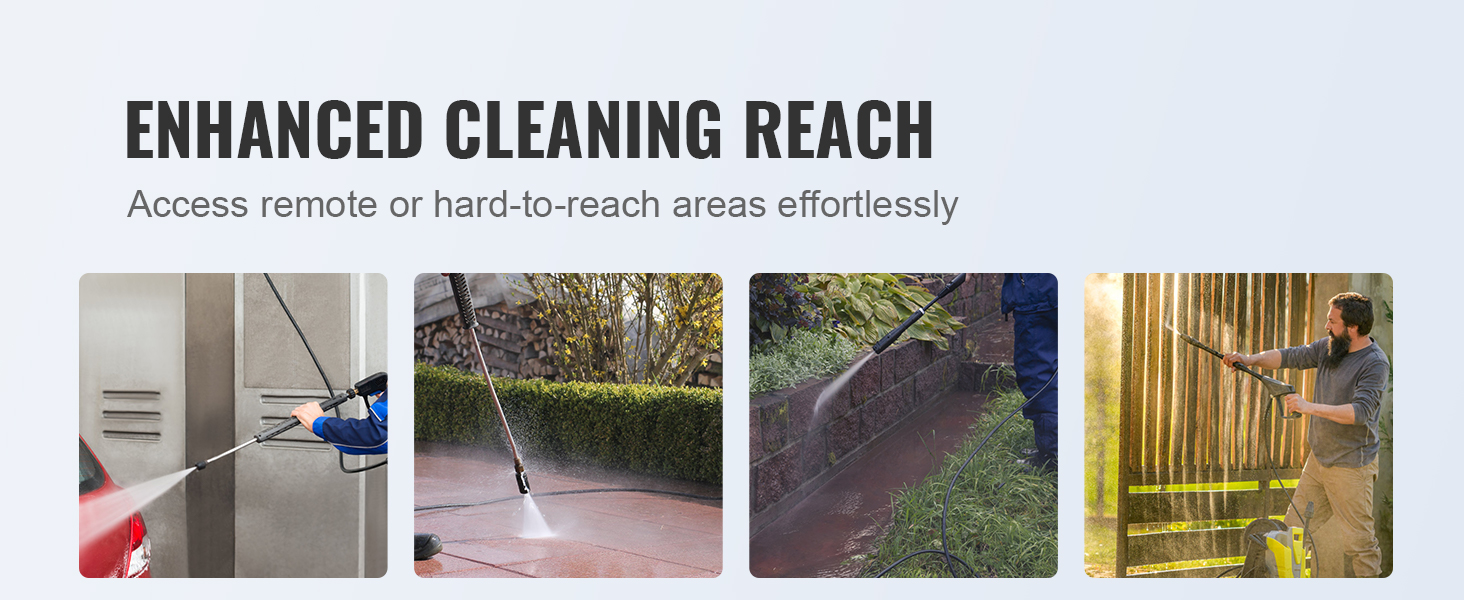 Extended Cleaning Range:Perfect for tackling tough jobs, this pressure washer hose can handle a variety of surfaces, including patios, driveways, vehicles, and more.