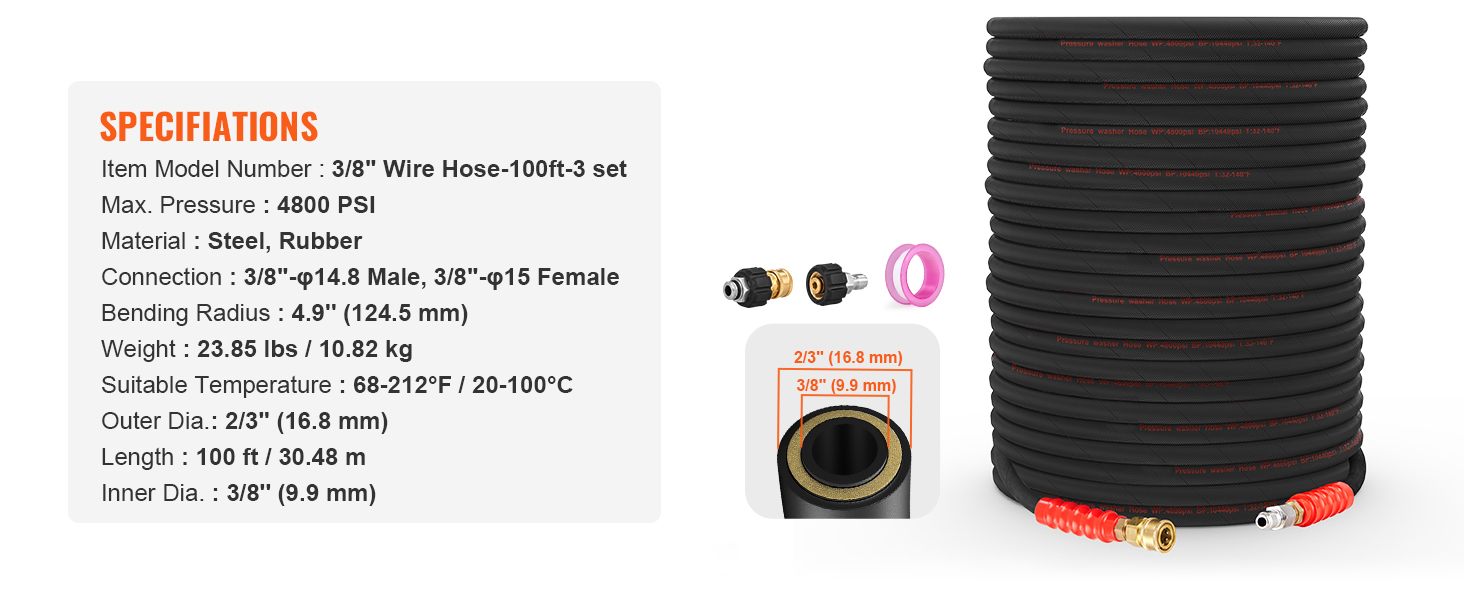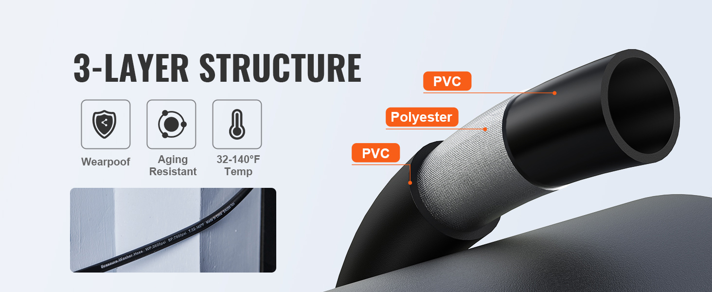 Durable 3-Layer Construction:Crafted with a robust 3-layer design, this hose is built to withstand frequent use, offering reliable cleaning performance over time.