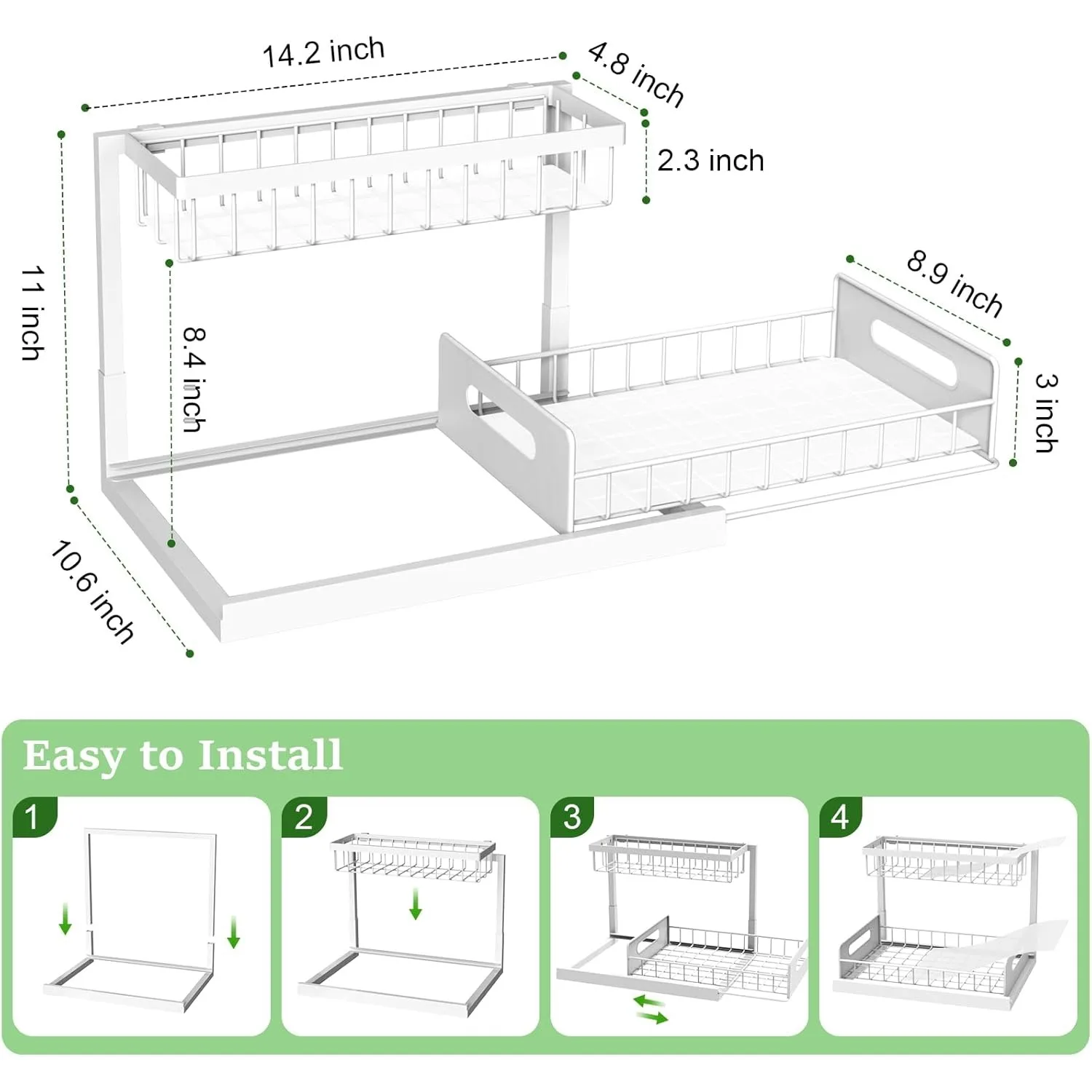 - Sliding Storage Drawer: The under sink organizer is designed as a sliding drawer with handles, can be pulled out smoothly, allowing you to easily access the items stored at the bottom.